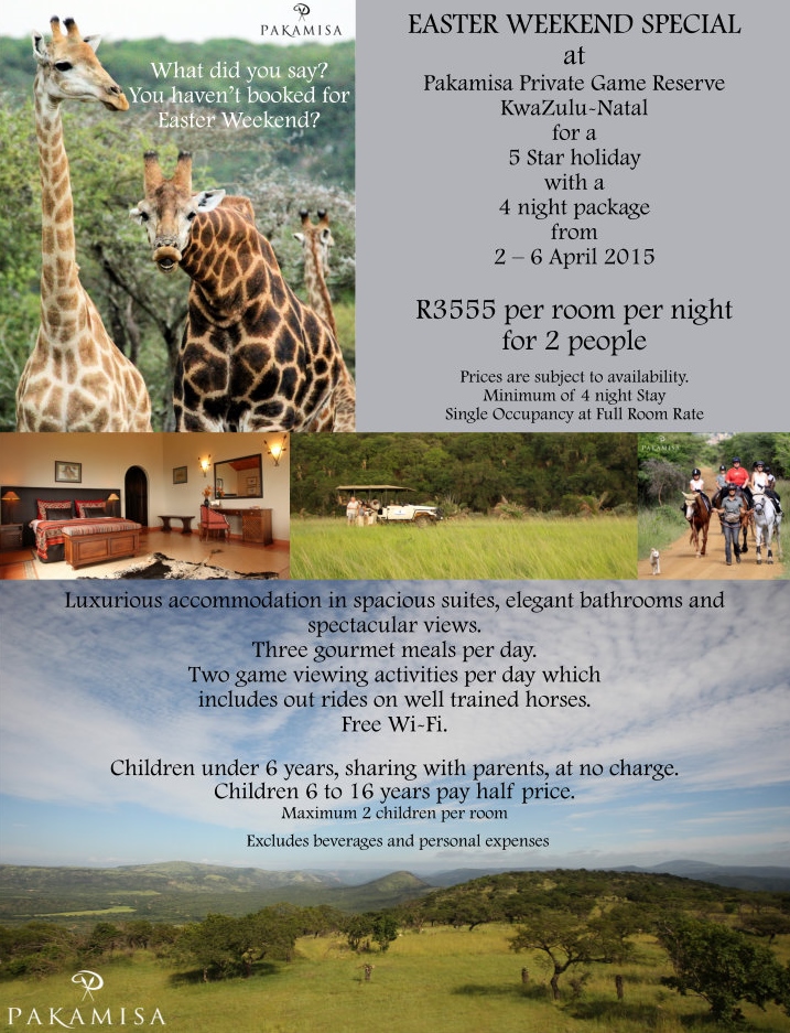 Wonderful 4 day Easter special in a 5 star lodge. Love the idea of horse riding in the bush? Then book now!